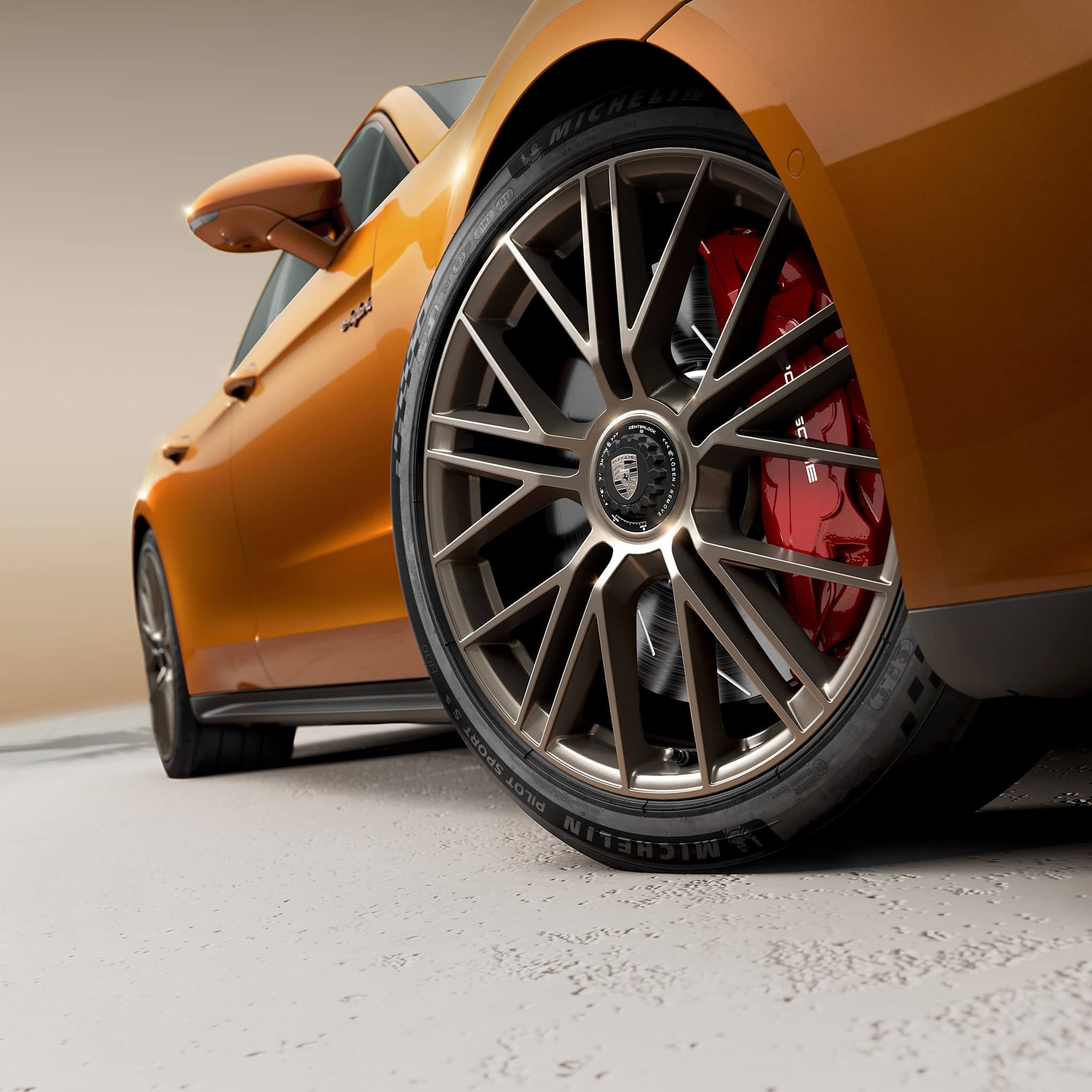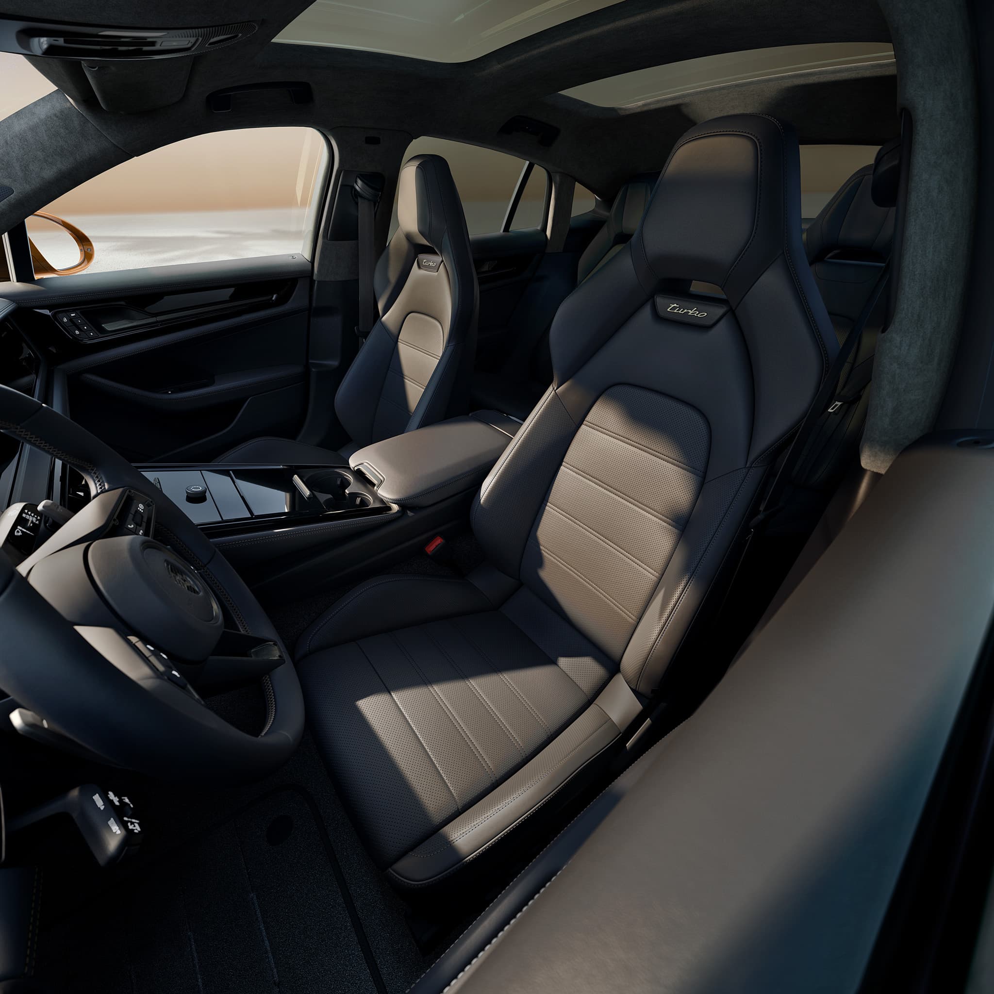 The Panamera models are equipped with adaptive air suspension including Porsche Active Suspension Management (PASM). The high-end Porsche Active Ride chassis is optionally available for the Panamera E-Hybrid models. The optional high-end Porsche Active Ride chassis (standard on the Panamera Turbo S E-Hybrid) is an active chassis system that significantly increases comfort and performance. In the air suspension shock absorbers, tensile and compressive forces can be generated separately on each wheel as required. The result: an even greater balance between comfortable travel and sporty driving dynamics. In addition, raising the level of the entire vehicle by 55 mm when opening and closing the doors increases the comfort of getting in and out.